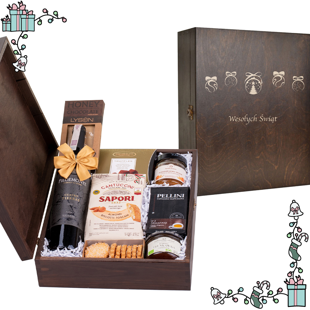 Świąteczny zestaw z upominkami, może zawierać w sobie różne elementy. Najczęściej są to jakieś smakołyki czy trunki, jednak nie jest to reguła! Oczywiście taki kosz może zawierać też kosmetyki, czy przyprawy, ale jest to rzadziej spotykane. Najlepszą opcją występującą na rynku, są zestawy, które możesz spersonalizować całkowicie pod swoje upodobania.
